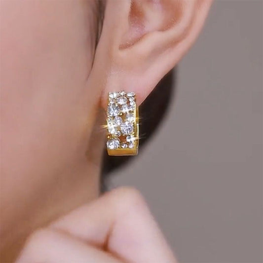 Diamond Zircon S925 Sterling Silver Earrings (18K Gold Plated)